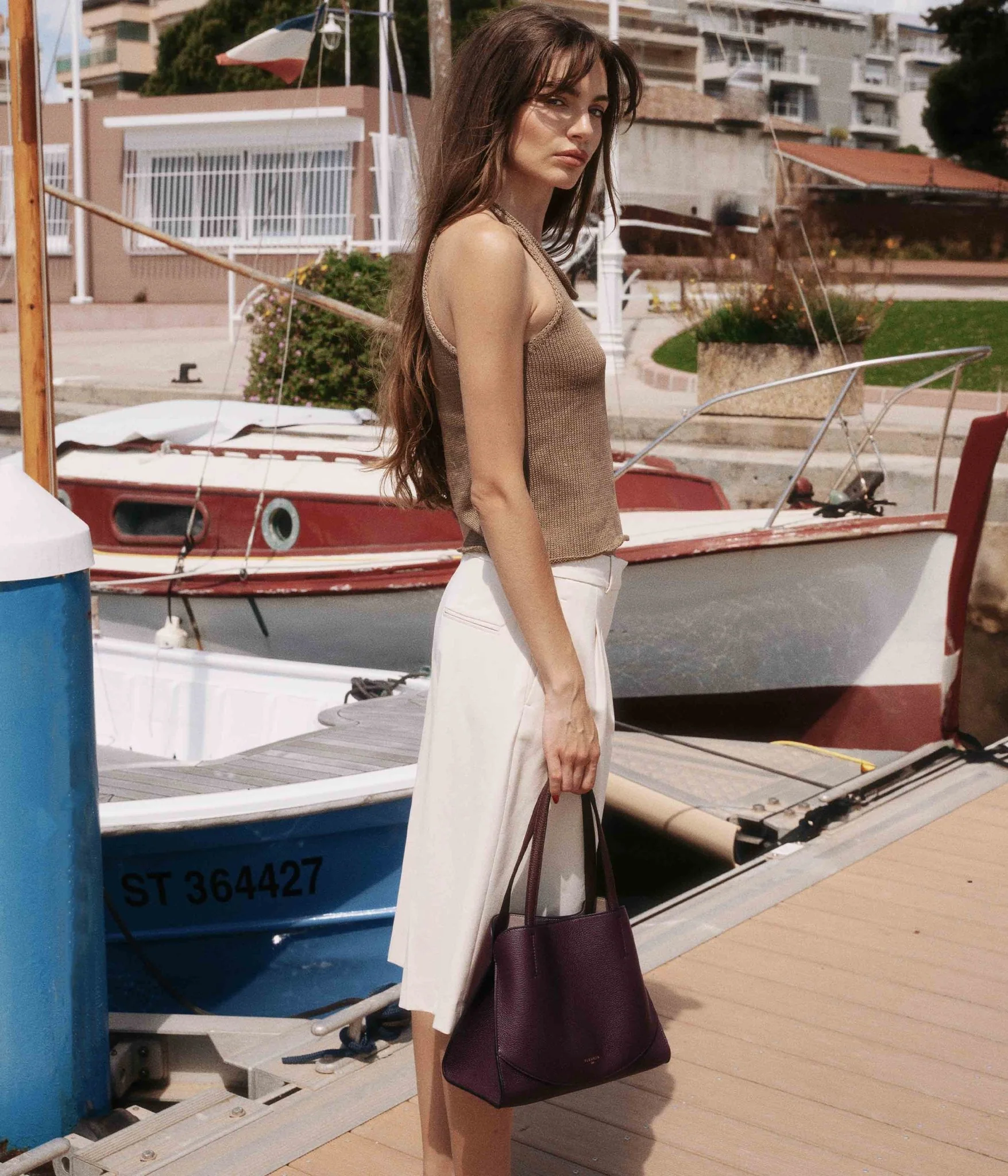 Its deep, intense Prune shade adds a sophisticated touch of character to your outfits. Pair it with soft tones like ivory, sandy beige or light grey for a balanced, elegant look. For a bolder contrast, it goes beautifully with rich colors such as forest green, navy blue or tobacco brown, creating a harmony that feels both bold and refined.