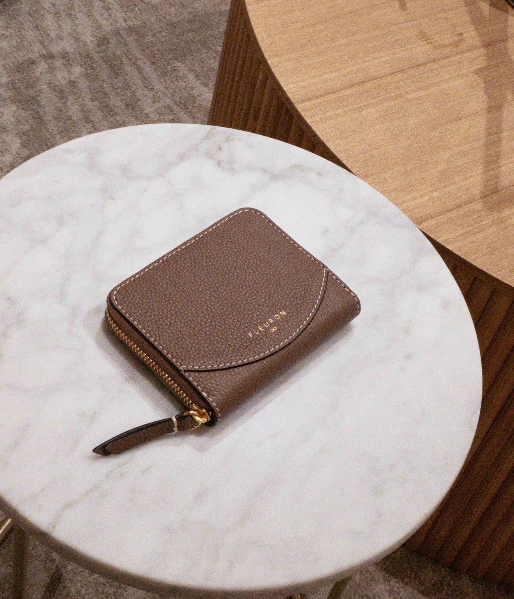 Indulge in the refined charm of Iced Brown, a warm and elegant shade that suits any occasion. This zip-around wallet, crafted from grained calf leather, perfectly balances style and functionality. Compact yet spacious, it features a clever interior designed to hold your cards, bills, and coins effortlessly. Made in Italy, it represents the harmony between meticulous design and exceptional craftsmanship.