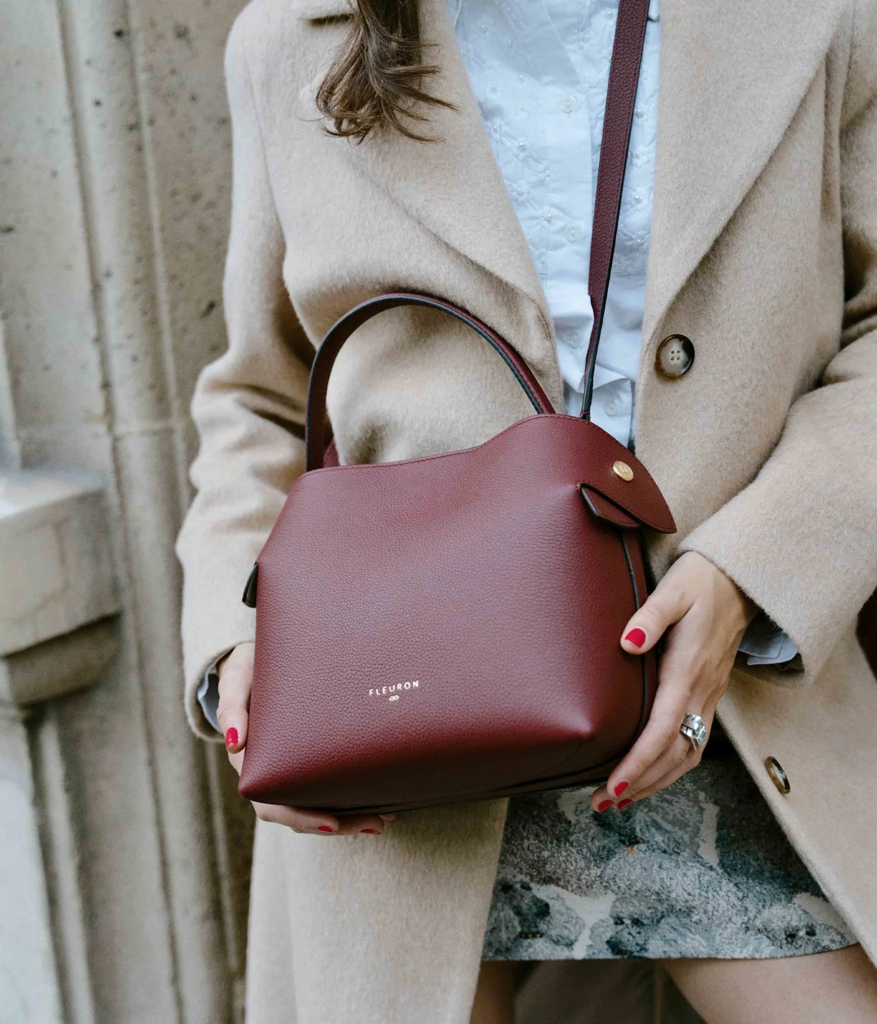 The Bordeaux color, reminiscent of the depth of a fine wine, infuses a touch of passion and joy to your ensembles, whether they are sophisticated or casual. This luxurious handbag, crafted in our Italian workshop from grained calf leather, is an elegant choice that promises to add a note of sophistication to your look.