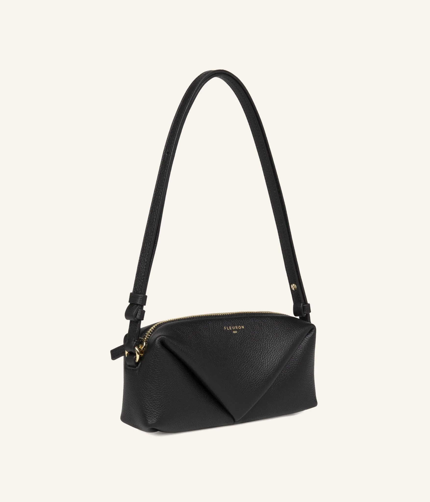 The Mini Trinity shoulder bag by Fleuron in black is the ultimate accessory to enhance any outfit. Handcrafted in Italy from premium calfskin leather, this bag offers a modern and refined style that will complement your wardrobe perfectly.