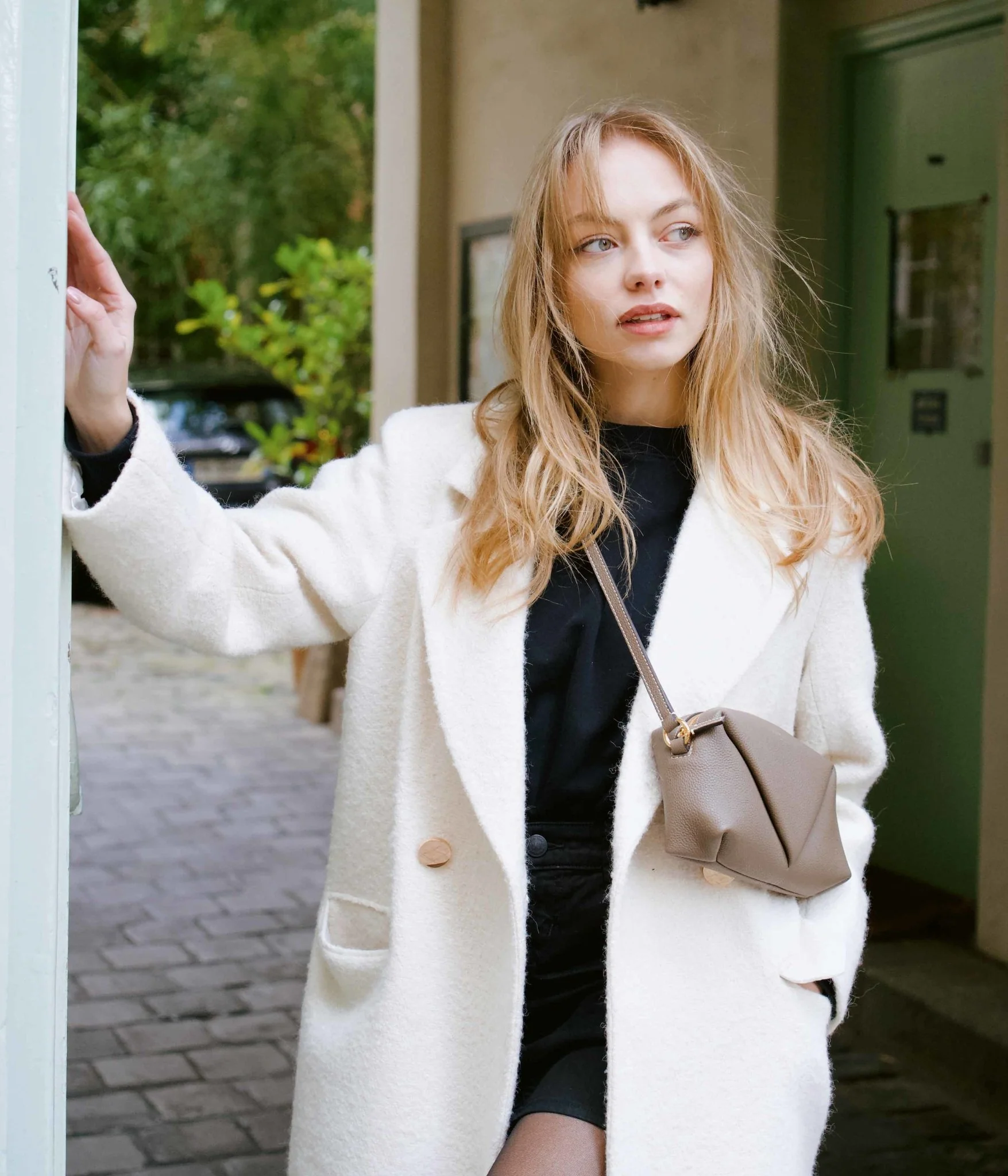 Show off a contemporary look with our Trinity shoulder bag from Fleuron in taupe, an iconic and timeless color from our house. Handmade in Italy, this taupe calfskin handbag lights up with both light and dark tones. With its adjustable strap, you can wear it as a clutch, on the shoulder or short crossbody. It offers ample space for your essentials and closes with a zipper on a beige interior.